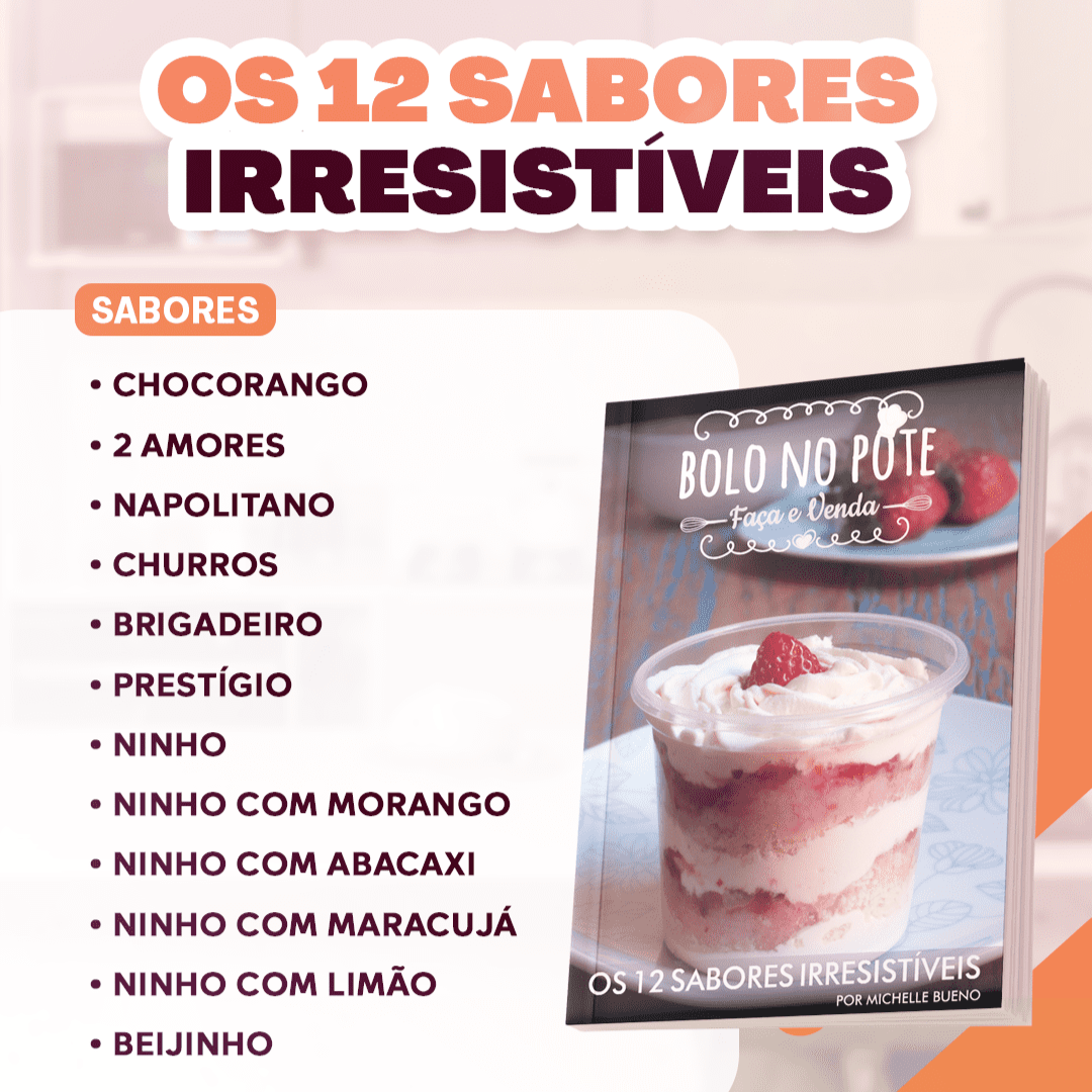 Esqueça tudo que já viu e ouviu falar sobre BOLOS NO POTE! Nesse E-BOOK você vai encontrar as receitas realmente IRRESISTÍVEIS para agradar os paladares mais exigentes.